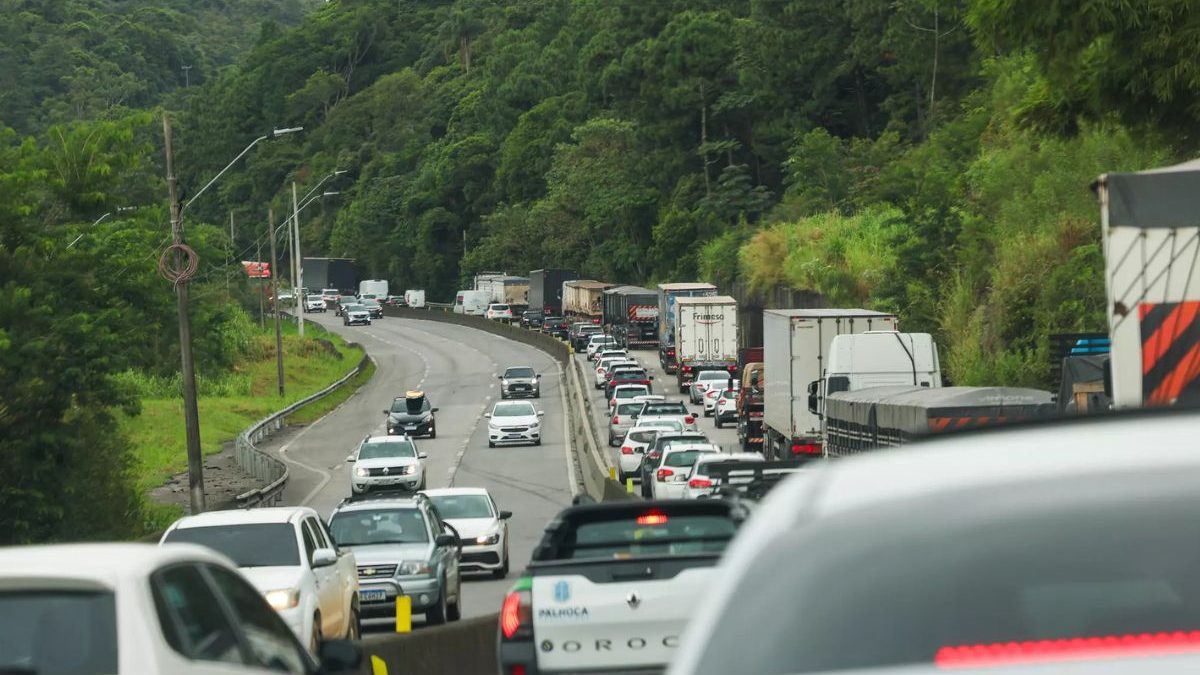 Acidente no Morro dos Cavalos causa bloqueio de faixa e lentidão no trânsito da BR-101