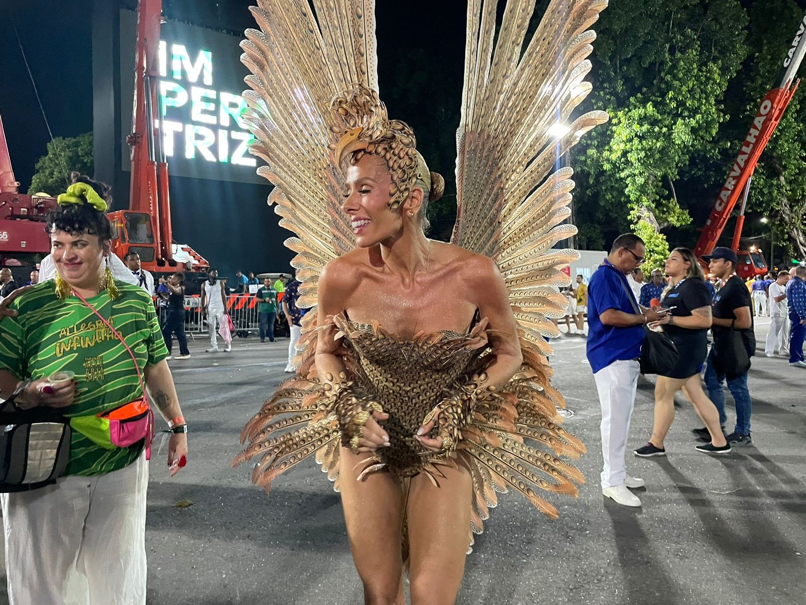 Adriane Galisteu surge como falcão-lanário e vira destaque na Portela