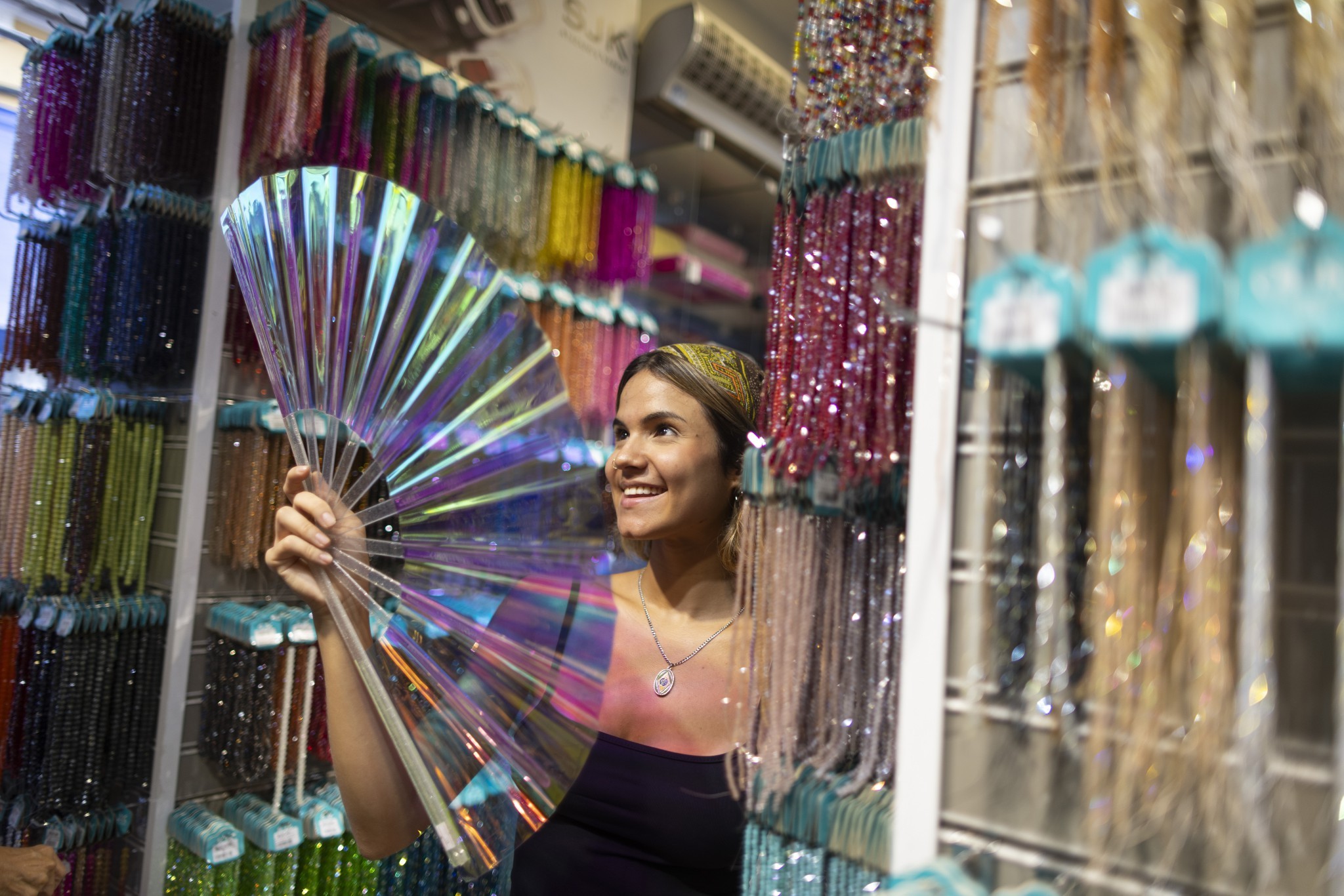 Vamos às dicas: na Saara, a SJK, na Rua Senhor dos Passos, 117, é especializada em artesanato. Tem de tudo por lá: miçangas, lantejoulas, paetês, fios de náilon, correntes e até conchas para aqueles looks com vibe sereia conhecidos de outros carnavais. Miçangas em cordas, prontas para montar tops e economizar tempo, custam entre R$ 3 e R$ 5. Leques holográficos — queridinhos desde o início do verão — saem por cerca de R$ 35.