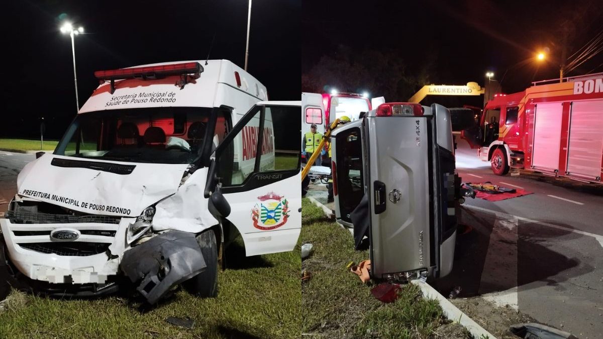 Colisão seguida de tombamento envolveu veículo da Prefeitura de Pouso Redondo na madrugada deste domingo (29), em Rio do Sul