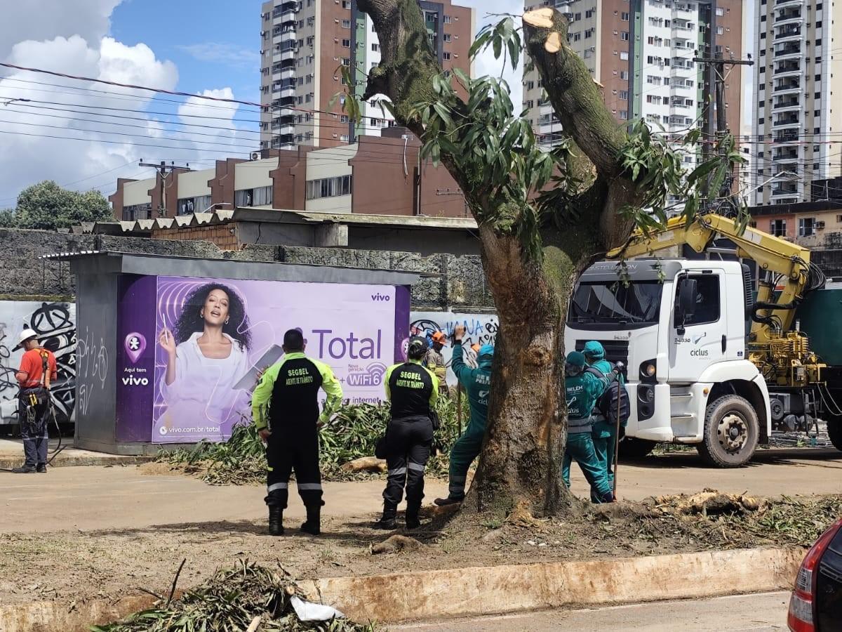 Após a queda da mangueira no domingo (19), a fiação de um poste pegou fogo e a via foi bloqueada. Moradores de áreas próximas ao incidente, assim como também em parte do bairro do Marco, relataram que ficaram sem energia. A falta de luz afetou residências, prédios comerciais e também o funcionamento de semáforos, comprometendo o trânsito em alguns pontos de grande movimentação da área.