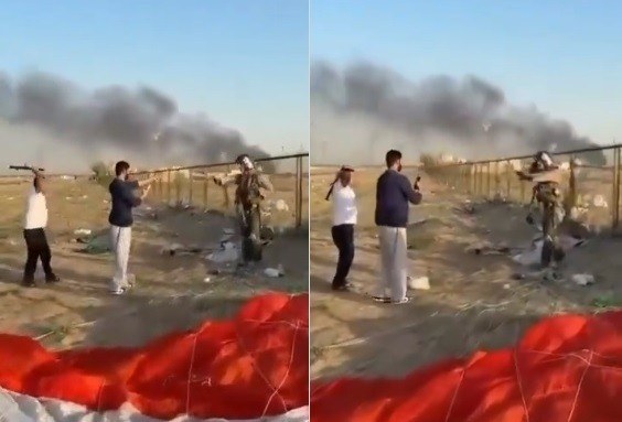 O piloto então grita repetidamente para o grupo que é americano, chegando a se ajoelhar em alguns momentos para mostrar que não representa uma ameaça. O grupo eventualmente parece perceber que ele não é iraniano, abaixando o cano e abandonando as posturas ameaçadoras. Assista abaixo: