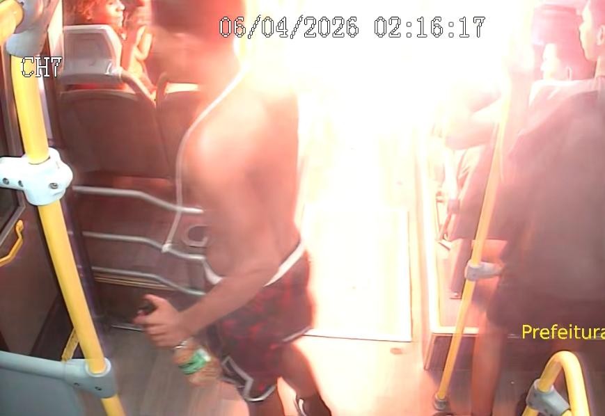 A explosão danificou um dos vidros do coletivo e assustou o motorista. Imagens das câmeras de segurança mostram que os dois homens carregavam garrafas de bebidas no momento da ação.