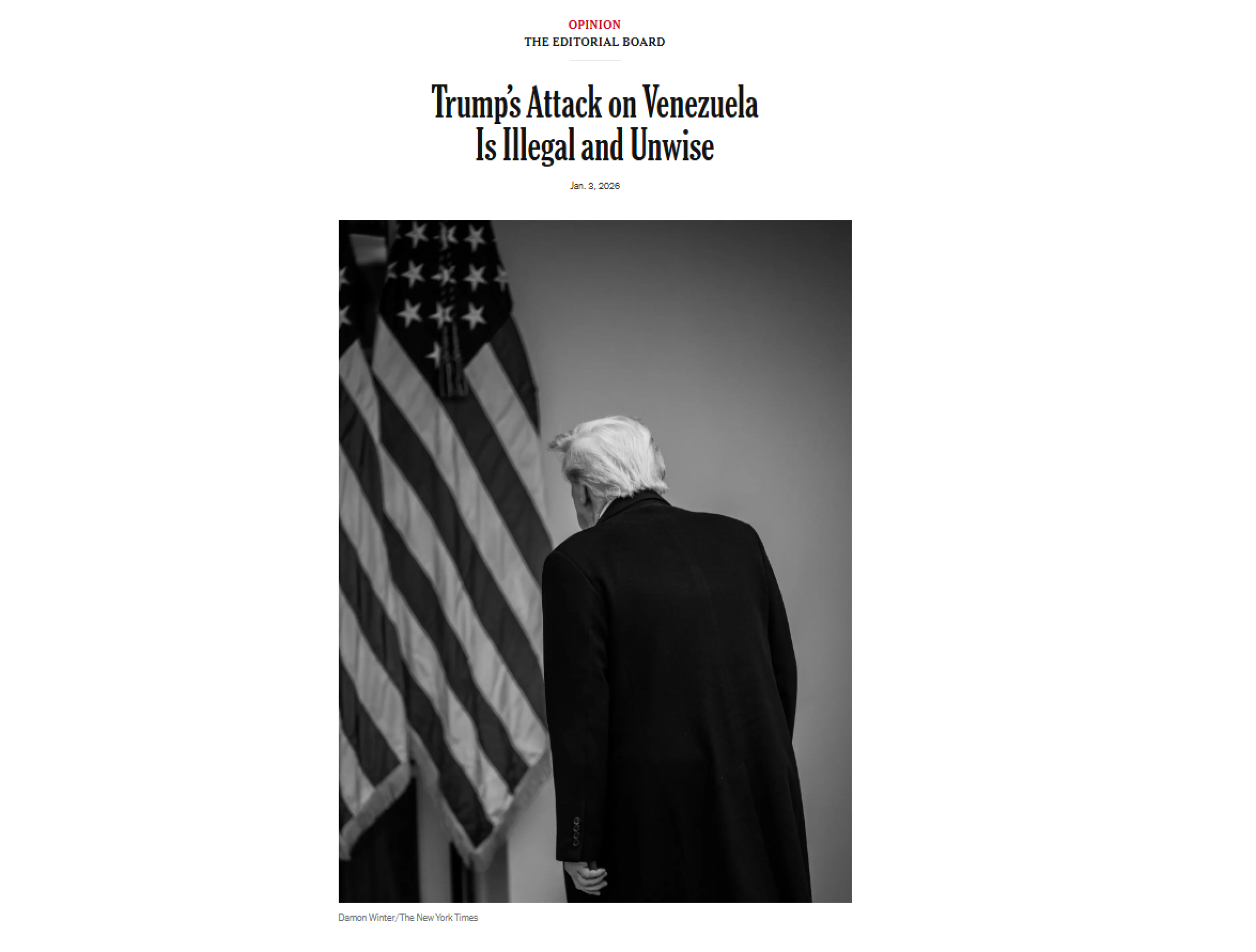 Segundo jornal, Trump não apresentou justificativa legal válida para a ação e não buscou autorização do Congresso, exigência prevista na Constituição dos EUA