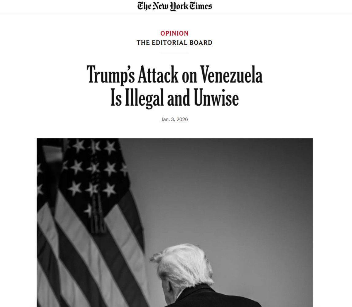 O New York Times abre o texto destacando que "poucas pessoas sentirão qualquer simpatia por Maduro". "Ele é antidemocrático e repressivo, e desestabilizou o Hemisfério Ocidental nos últimos anos", diz o jornal, detalhando denúncias de assassinatos, tortura, violência sexual e detenções arbitrárias de opositores políticos na Venezuela. No entanto, o editoral ressalta, a intervenção americana é questionável:
