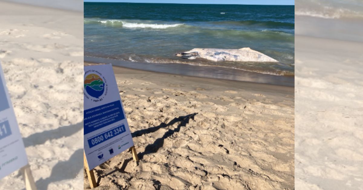 Baleia de 8 metros e 7 toneladas em decomposição acende alerta de risco biológico em praia