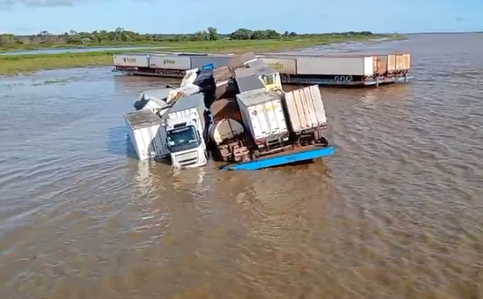 De acordo com informações iniciais, a balsa transportava contêineres e veículos quando acabou submergindo parcialmente. Imagens que circulam nas redes sociais mostram parte da carga já dentro da água após o ocorrido.