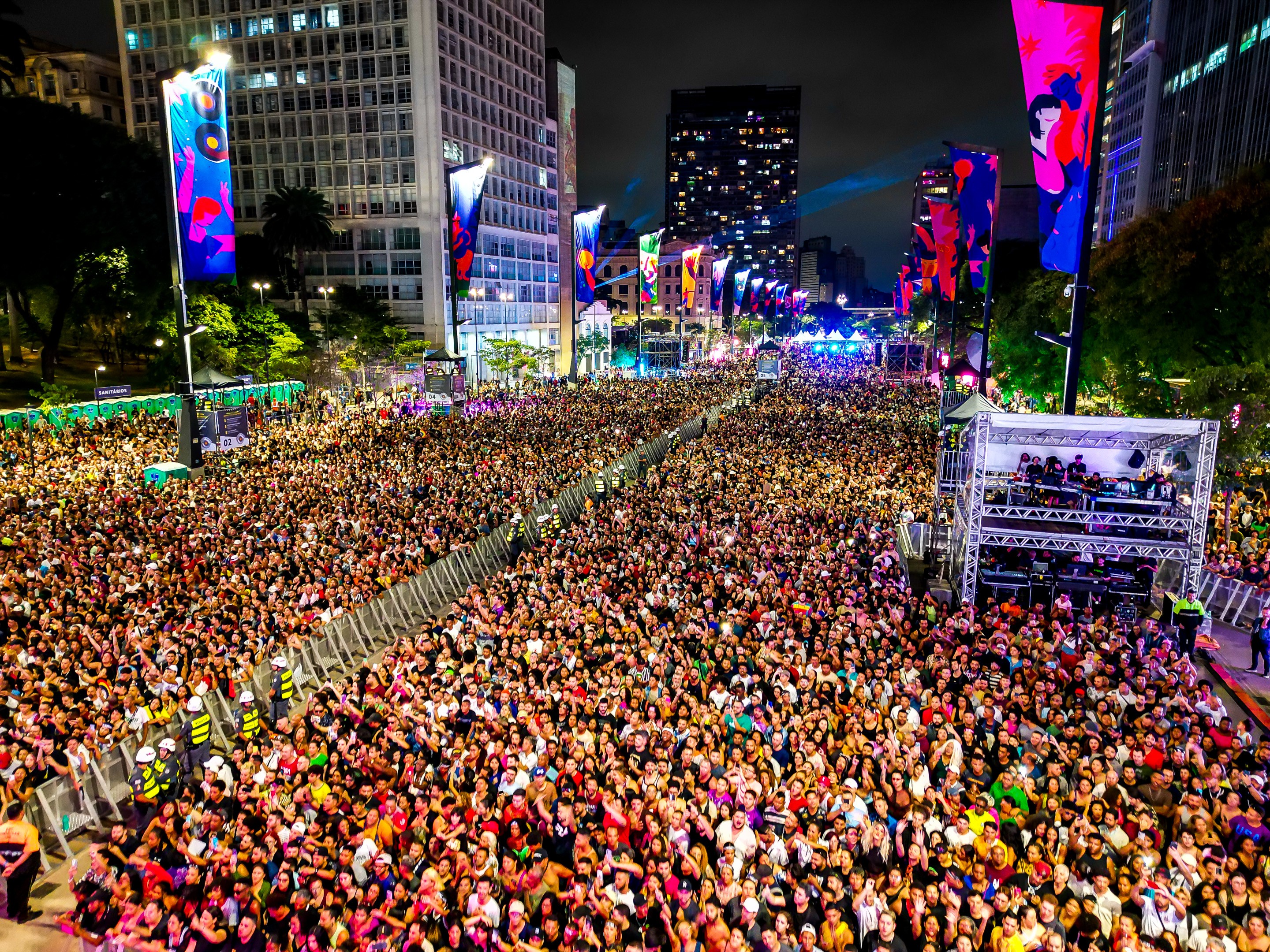 Painel de LED em evento no Vale do Anhangabaú, em 2025