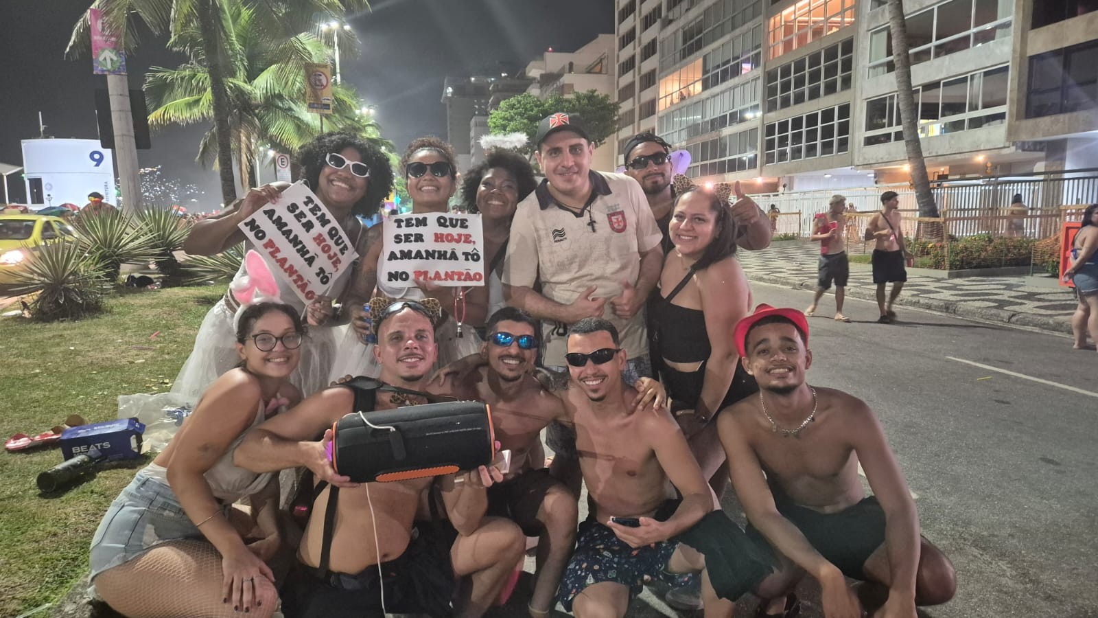 Bloco das caixinhas: foliões ligam aparelhos de som para prorrogar a folia de noite em Ipanema