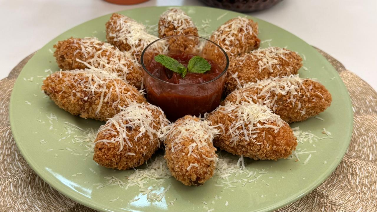 Bolinho de Arroz Recheado. Foto: Roberta SalgueiroDescubra uma receita deliciosa de bolinho de arroz: crocante e recheado, perfeita para evitar desperdícios