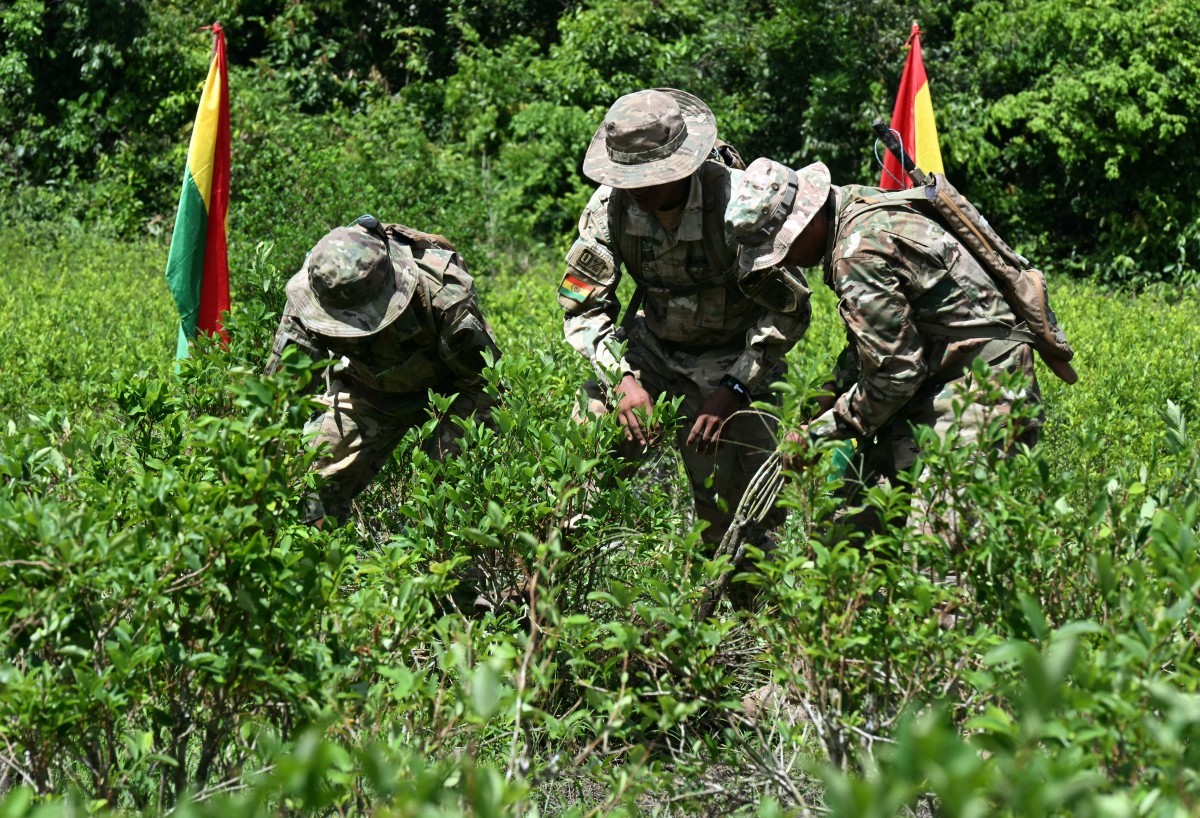A Bolívia retomou a erradicação de plantações ilegais de coca após quase um ano de paralisação. A operação foi relançada em uma cerimônia na cidade de Chimoré, no Trópico de Cochabamba, nesta quinta-feira (5), onde militares iniciaram a destruição manual de novos cultivos, utilizando pás, picaretas e facões sob forte calor, segundo constatou a AFP.