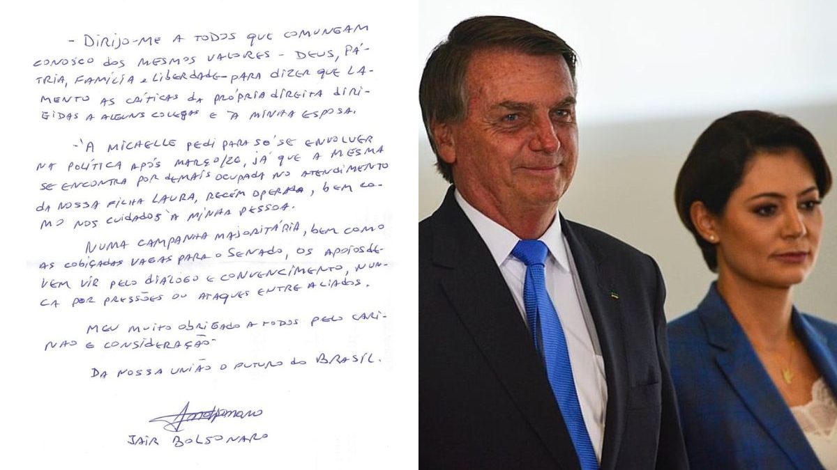 Ex-presidente Jair Bolsonaro (PL) pediu para a esposa se afastar da política até março deste ano, diz carta escrita na prisão