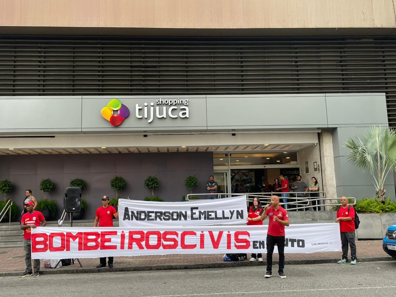 Um mês após o incêndio que matou dois funcionários durante o combate às chamas no Shopping Tijuca, na Zona Norte do Rio, bombeiros civis realizaram um ato na entrada central do centro comercial, na manhã desta segunda-feira. A mobilização foi organizada pelo Sindicato dos Bombeiros Civis do Estado do Rio de Janeiro e reuniu trabalhadores da categoria em defesa de melhores condições de trabalho, renda, valorização profissional e em uma homenagem aos funcionários mortos no incêndio.