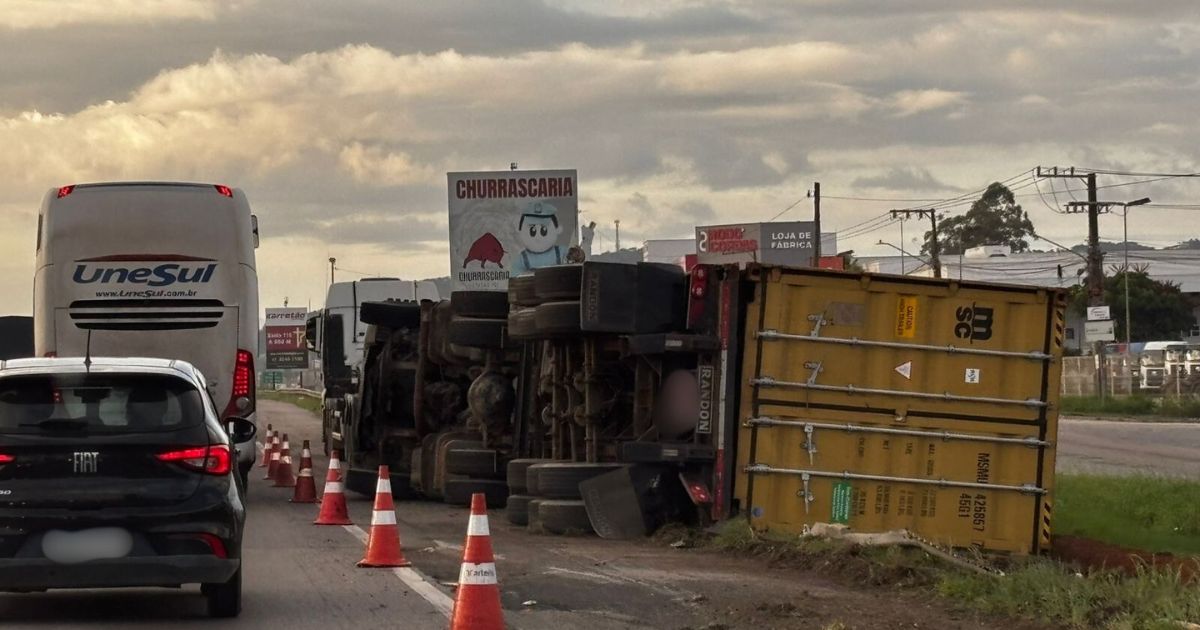 Apesar do acidente na BR-101, em ItajaÃ, concessionária responsável diz que fluxo tÃpico explica a lentidão O post BR-101 tem 25 km de fila após carreta tombar em SC apareceu primeiro em ND Mais