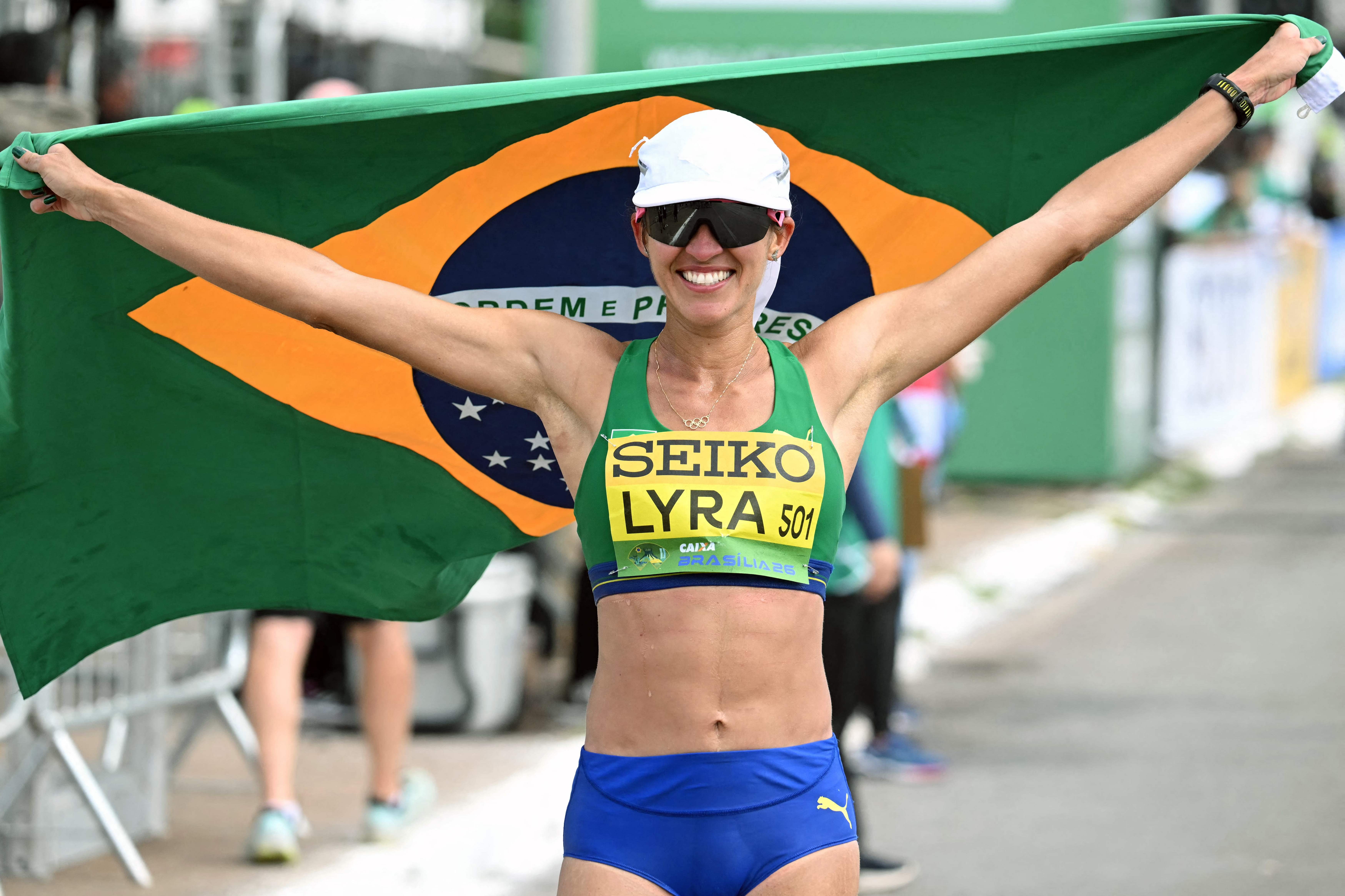 Viviane Lyra celebra o quinto lugar na maratona do Mundial de Marcha Atlética por Equipes, em BrasÃlia