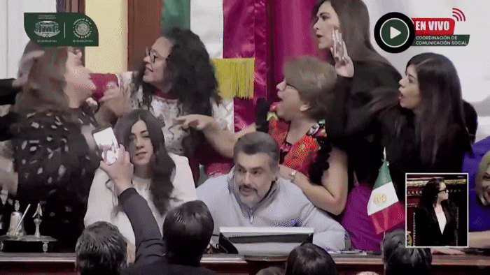 Brigas e puxões de cabelo no Parlamento mexicano: tumulto irrompe por causa do fechamento do Instituto da Transparência.