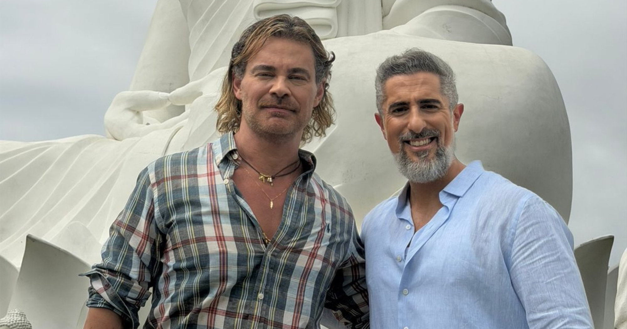 Budista, Carmo Dalla Vecchia surge com Mion no Buda de Ibiraçu: "Lindo" (Foto: Reprodução/Instagram @carmodallavecchia)Apresentador da Globo desembarcou no Espírito Santo para filmagens, participou da Romaria da Família, na Festa da Penha, e gravou no Buda Gigante