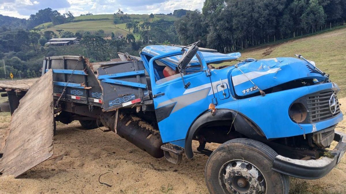 Caminhão é reduzido a sucata e motorista escapa de tragédia em Santa Catarina