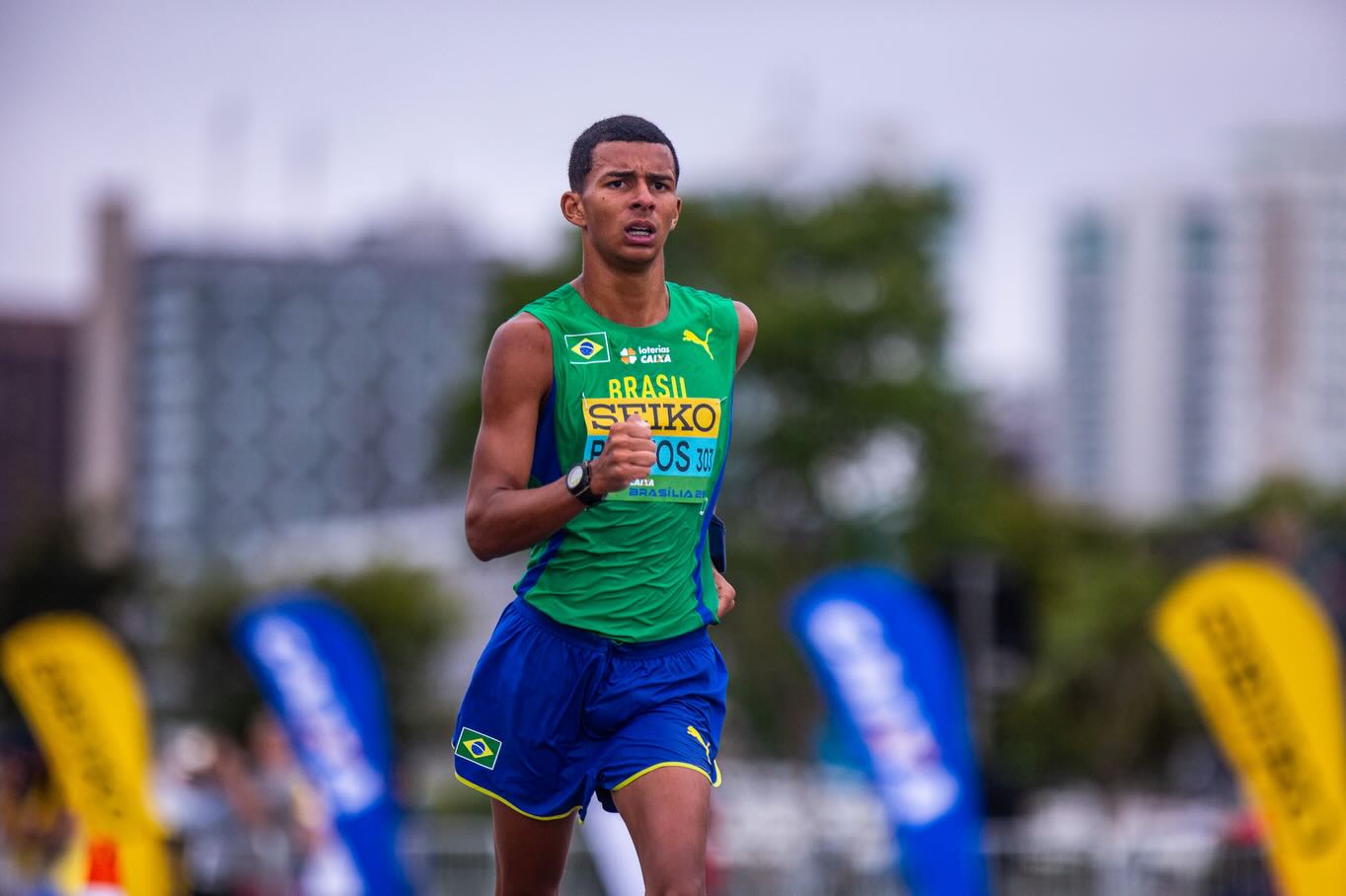 Davi Gabriel com a bandeira do Brasil após completar a prova (Foto: Gustavo Alves/CBAt)No dia do seu aniversário de 18 anos, Davi Gabriel fez bonito em Brasília (DF) no Mundial de Marcha Atlética por Equipes