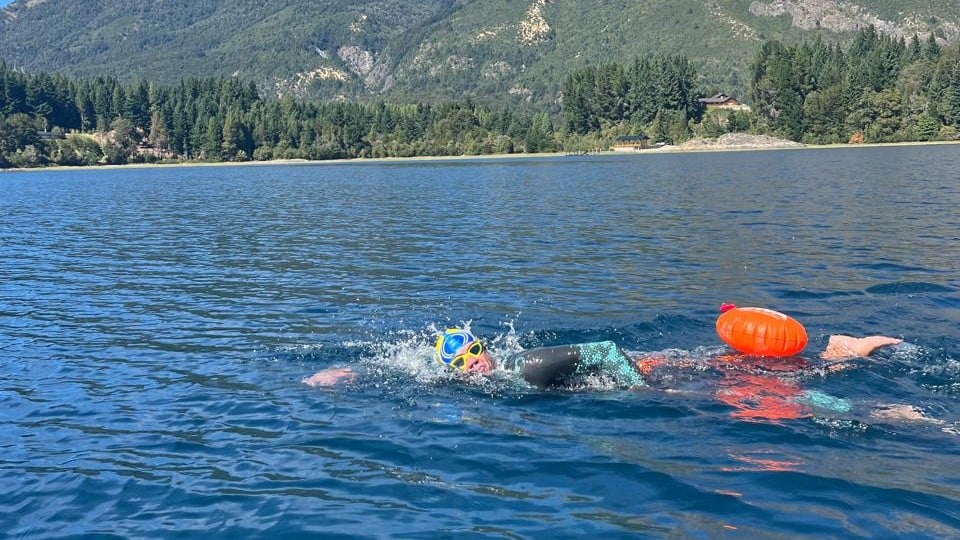 Capixaba encara água gelada e nada por mais de seis horas para completar travessia em Bariloche