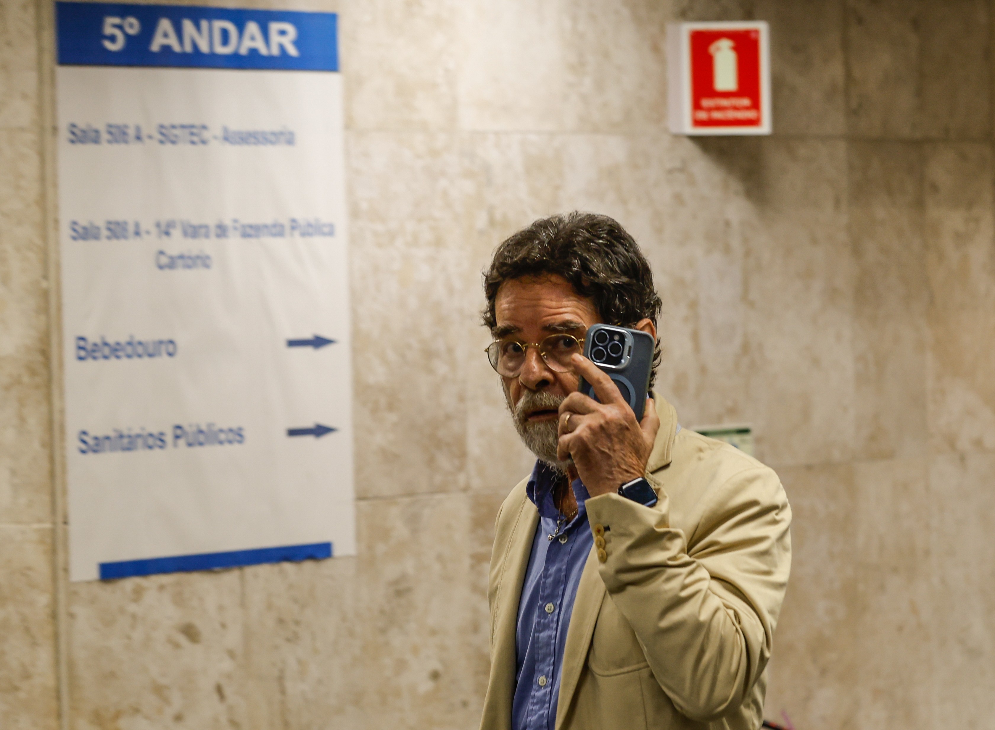 Antes das 15h, Paulo Roberto ainda não tinha sido ouvido. Num dos momentos em que deixou a sala onde estava isolado para ir ao banheiro, tentou se proteger com o celular das lentes das câmeras dos jornalistas presentes no local.
