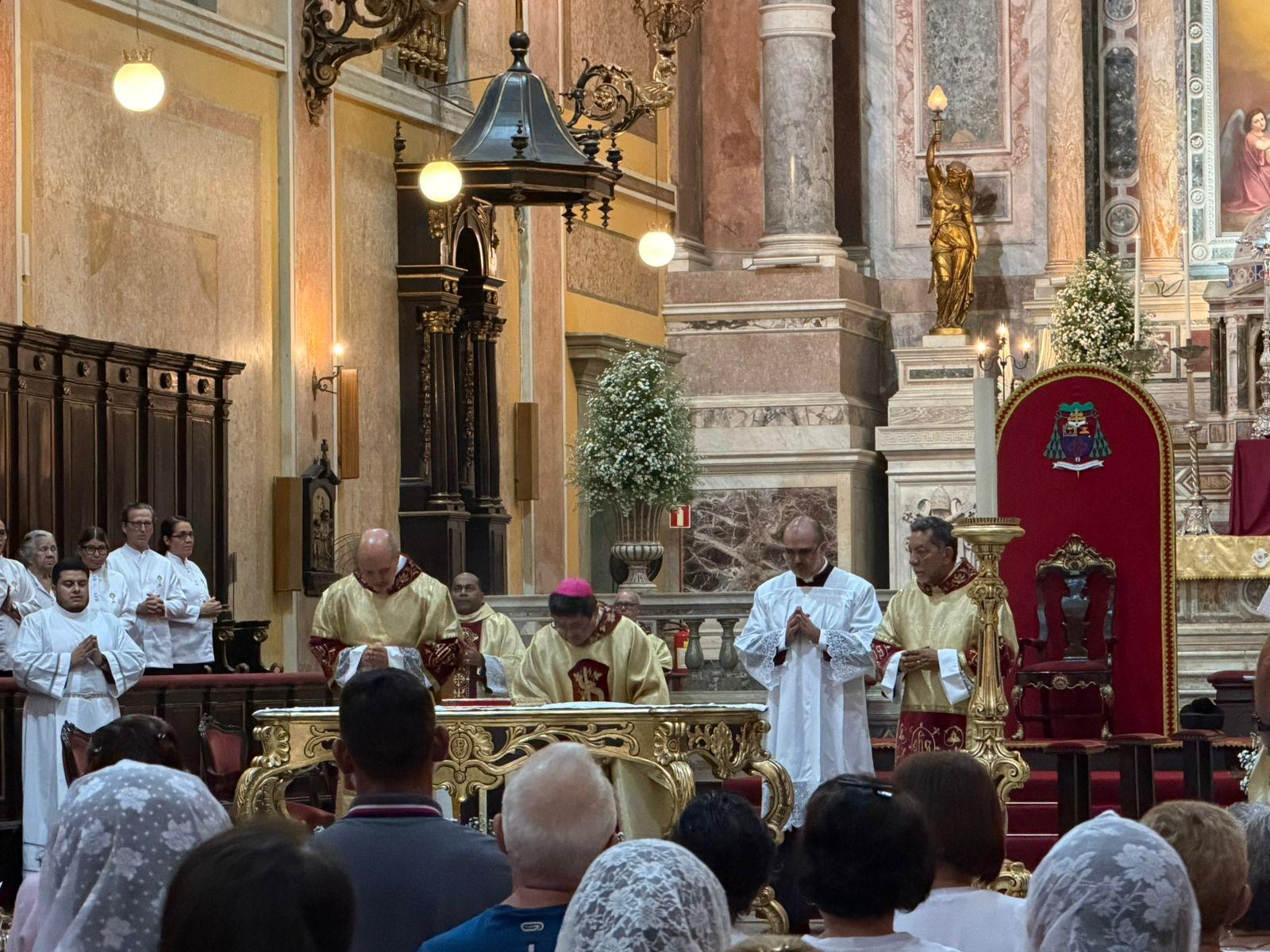 Presidida por Dom Julio Endi Akamine, a missa é marcada pelo tradicional rito do lava-pés, que relembra o gesto de humildade de Jesus Cristo ao lavar os pés dos apóstolos, simbolizando o serviço e o amor ao próximo.