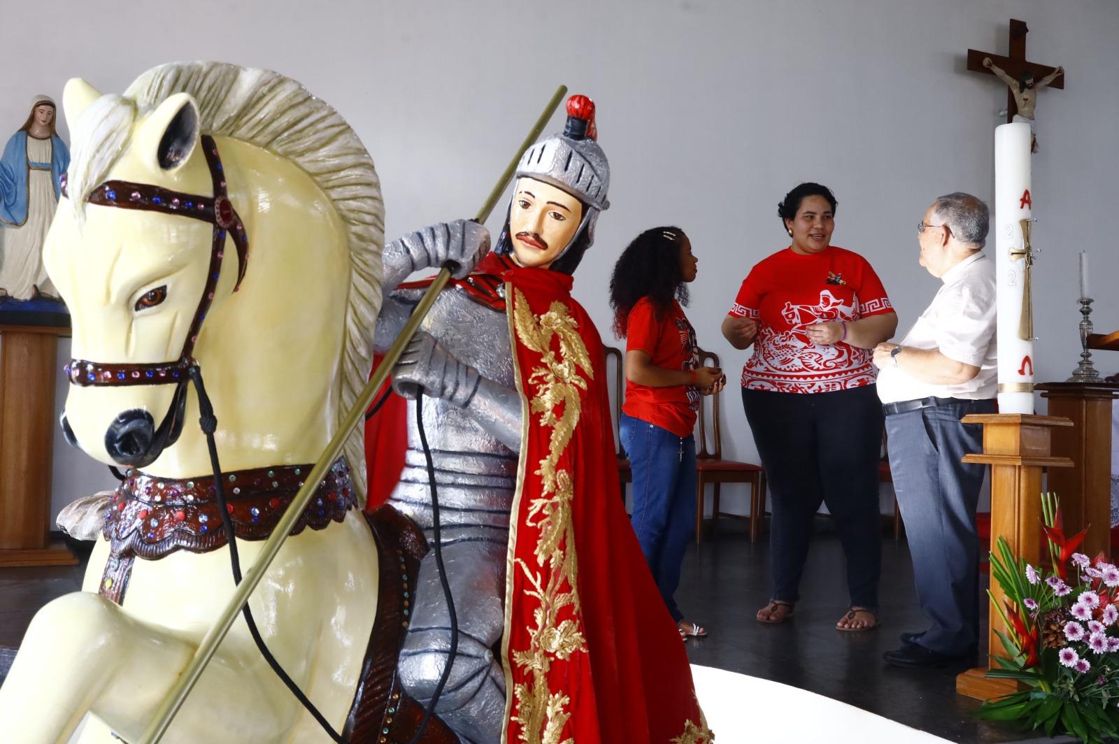 “São Jorge entra no imaginário popular como um exemplo de coragem, determinação, firmeza na fé, inclusive quando questionado pelo próprio imperador que queria obrigar São Jorge de prestar culto a ele, imperador, do que ao Deus que ele falava que era Jesus Cristo, ele disse só tenho um Senhor, meu Senhor Jesus Cristo. Então, essa coragem e determinação é uma coisa que impacta as pessoas”, explicou o pároco de São Jorge, padre Raimundo Ribeiro.