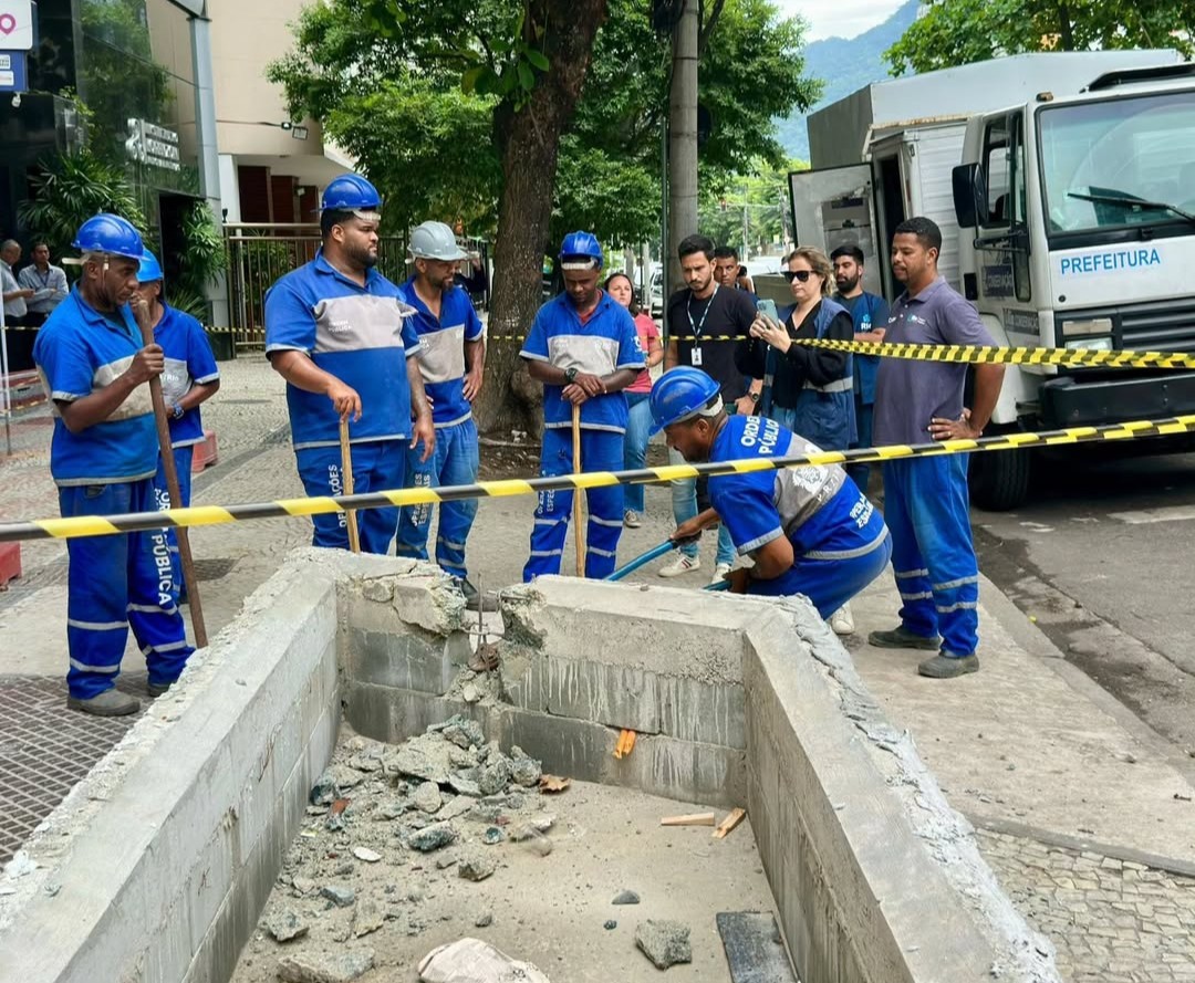Uma estrutura erguida irregularmente na calçada da Avenida Afrânio de Melo Franco, no Leblon, foi demolida nesta segunda-feira (2). Uma das associações de moradores do bairro, a Amigos do Leblon (Amoleblon), registrou a demolição feita após denúncias. A operação teve participação da Gerência Executiva Local (GEL) da Lagoa, da Secretaria municipal de Ordem Pública (Seop) e da Secretaria de Conservação.