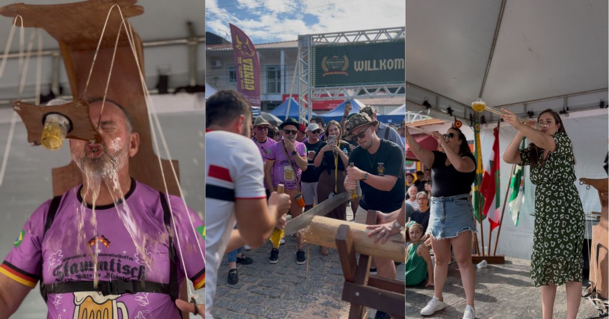 São Pedro de Alcântara, na Grande Florianópolis, vai celebrar 32 anos de emancipação na Stammtisch; chopp em metro, competição de serrador e marionete são os destaques do evento
