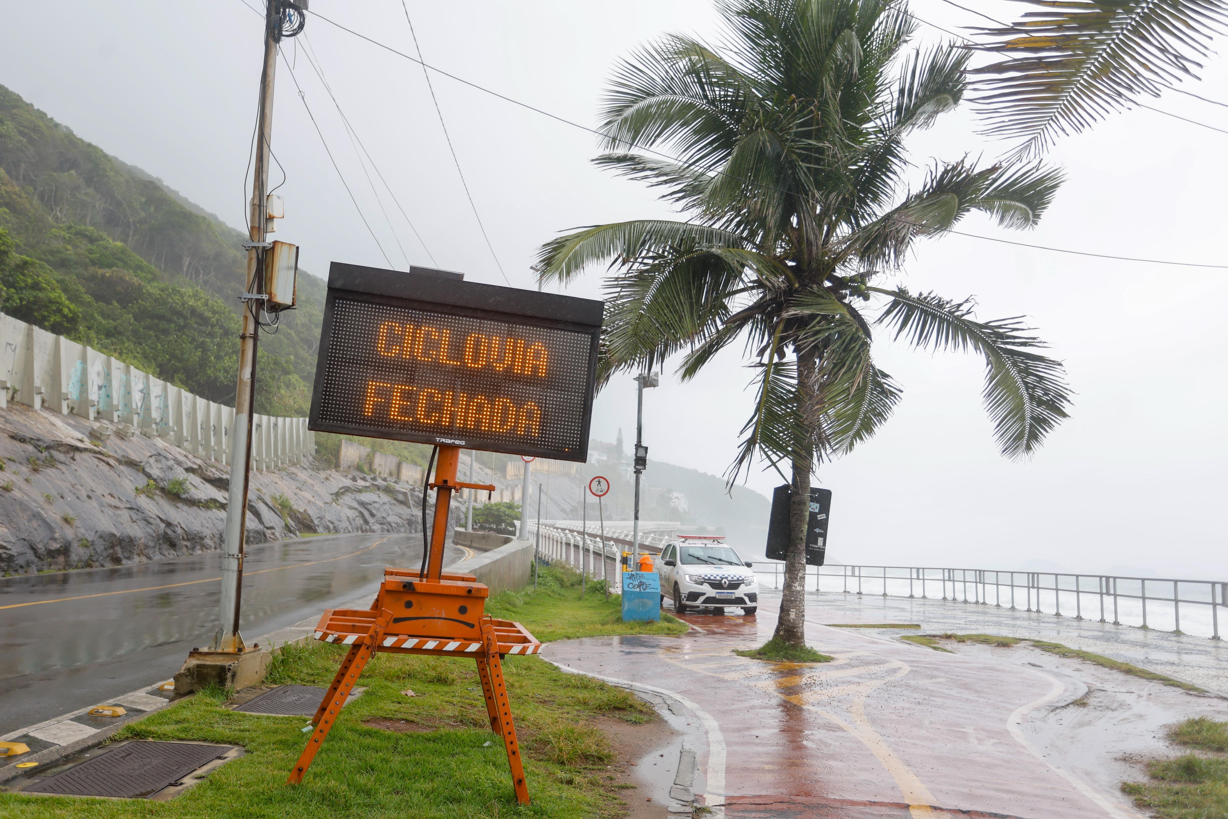 A Ciclovia Tim Maia foi fechada, no trecho entre São Conrado e a passarela metálica do Vidigal, na Zona Sul do Rio. A medida de segurança foi tomada após o registro de ondas de dois metros atingirem a costa. O fechamento, segundo o Centro de Operações do Rio (COR), não afeta o funcionamento da Avenida Niemeyer.