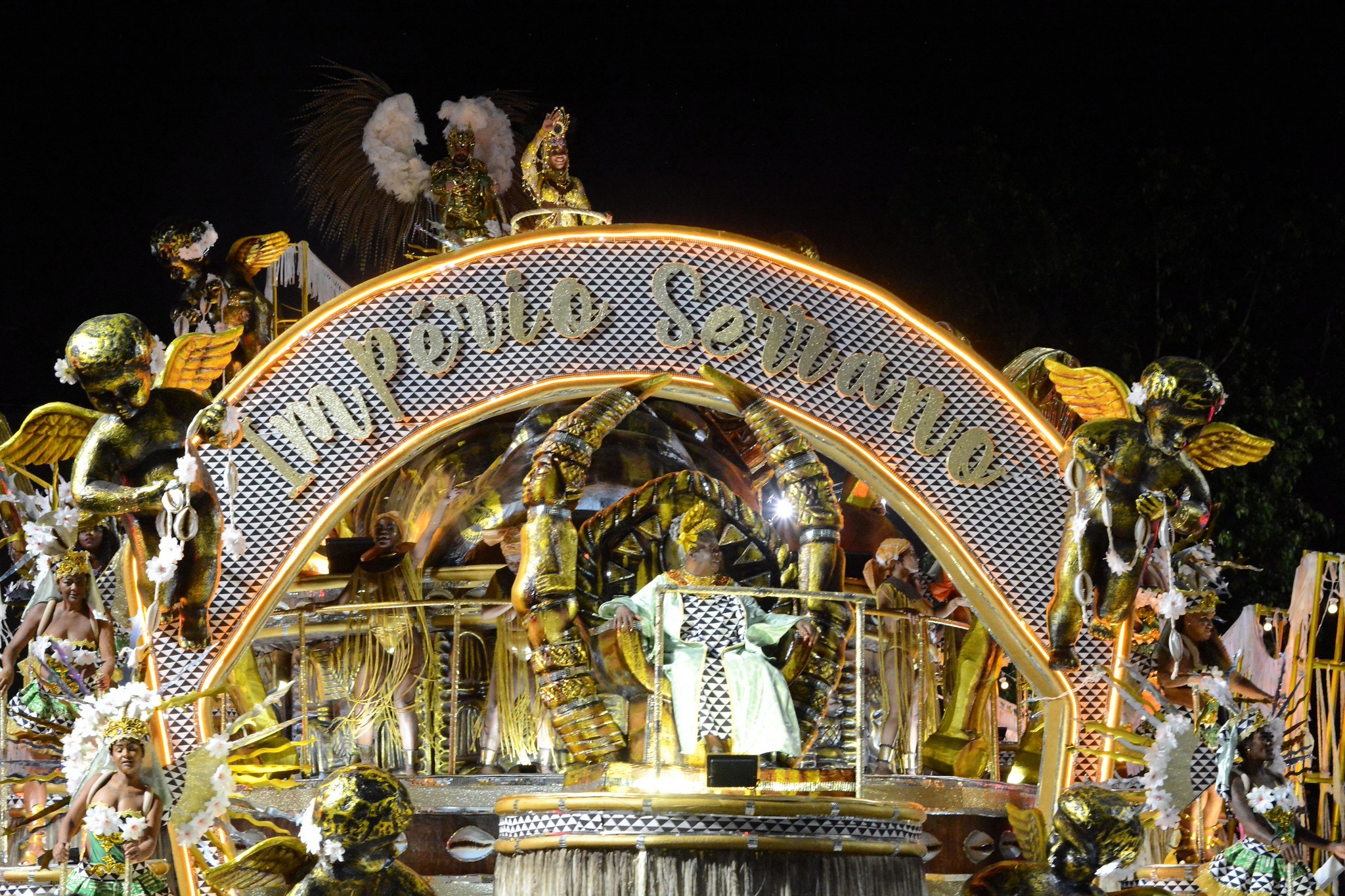 Era 0h59 quando Conceição Evaristo se posicionou em seu lugar no carro abre-alas do Império Serrano, quarta escola a cruzar a Marquês de Sapucaí. Com a ajuda de um guincho, a escritora acomodou-se no trono confeccionado no segundo andar da alegoria. Cerca de 10 minutos depois, ao atravessar o setor 1, a homenageada da verde e branca de Madureira demonstrou toda a alegria e disposição que a acompanharam ao longo do desenvolvimento do enredo. Ficou de pé, cantou o samba com fervor e interagiu com o público, que a reverenciou.
