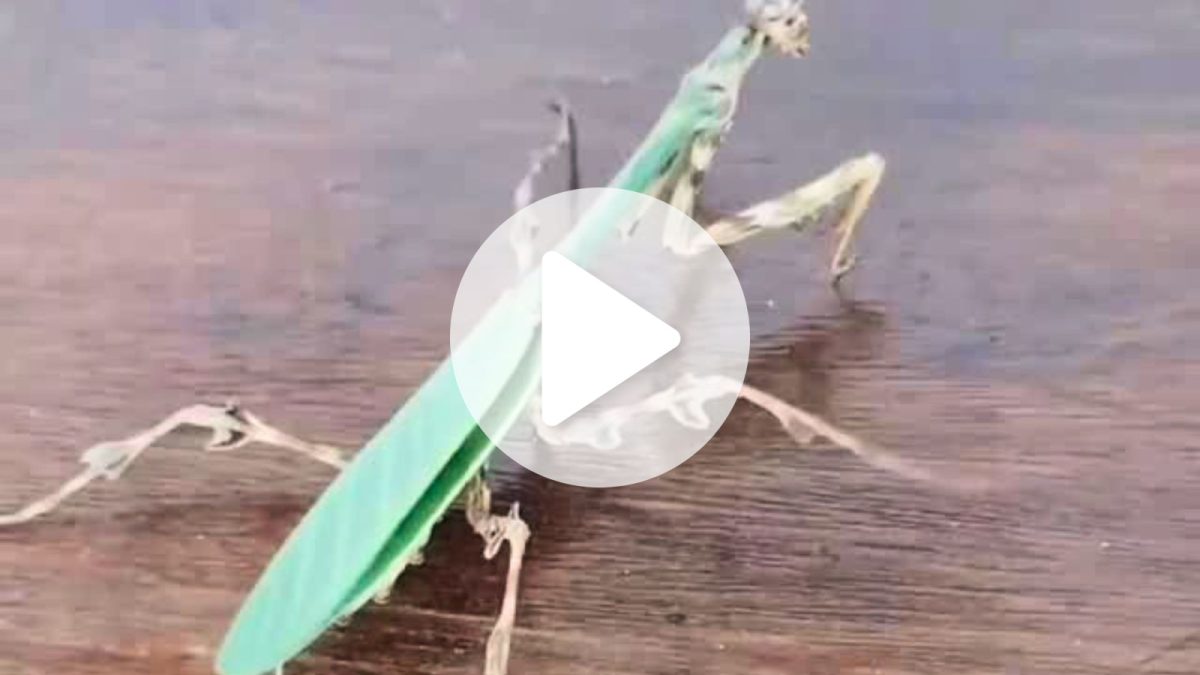 Louva-a-deus-unicórnio foi encontrado por moradora de Blumenau e registro foi divulgado nas redes sociais