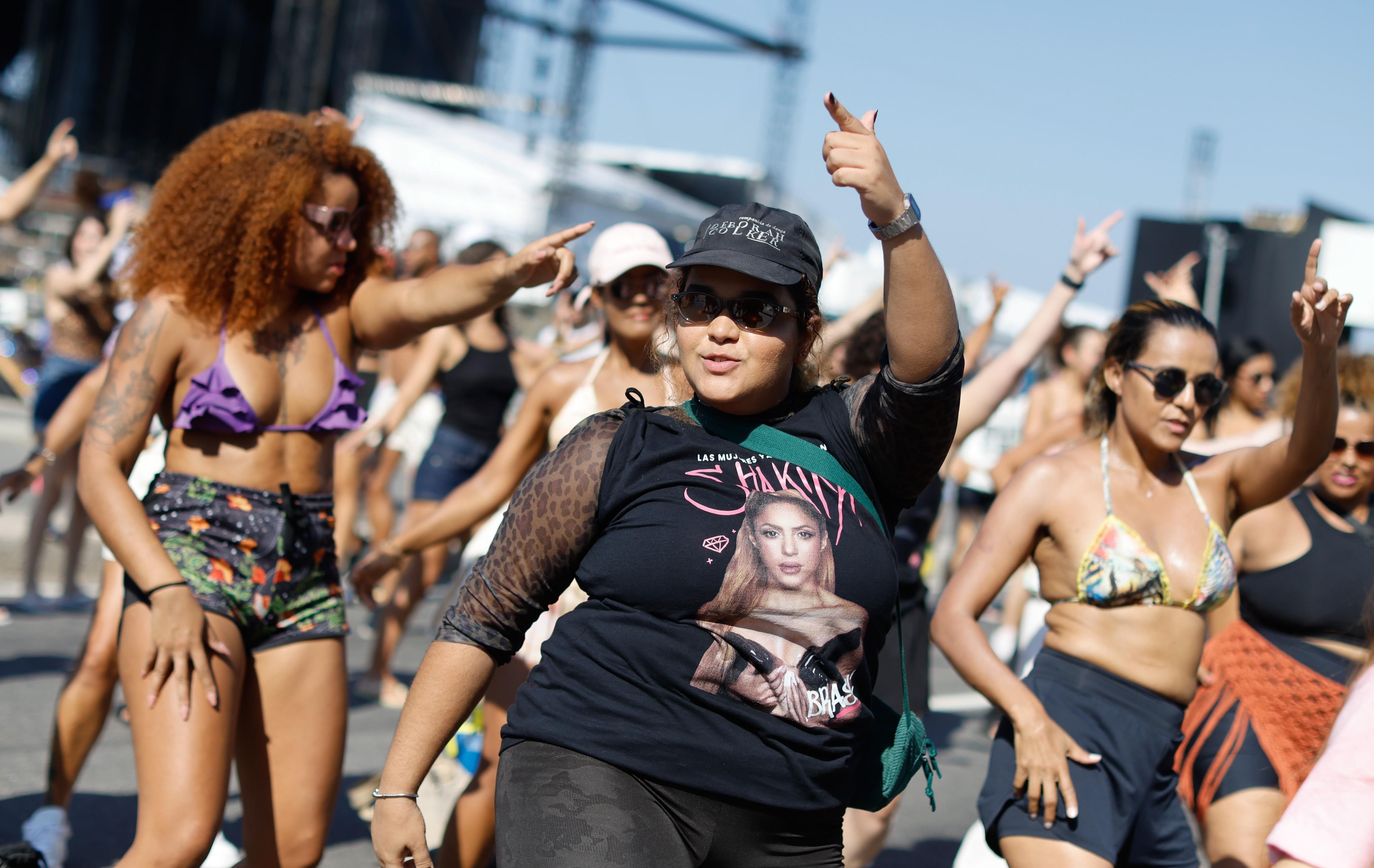 Copacabana vira pista de dança antes de show de Shakira e fãs encaram calor para aprender coreografia de Waka Waka