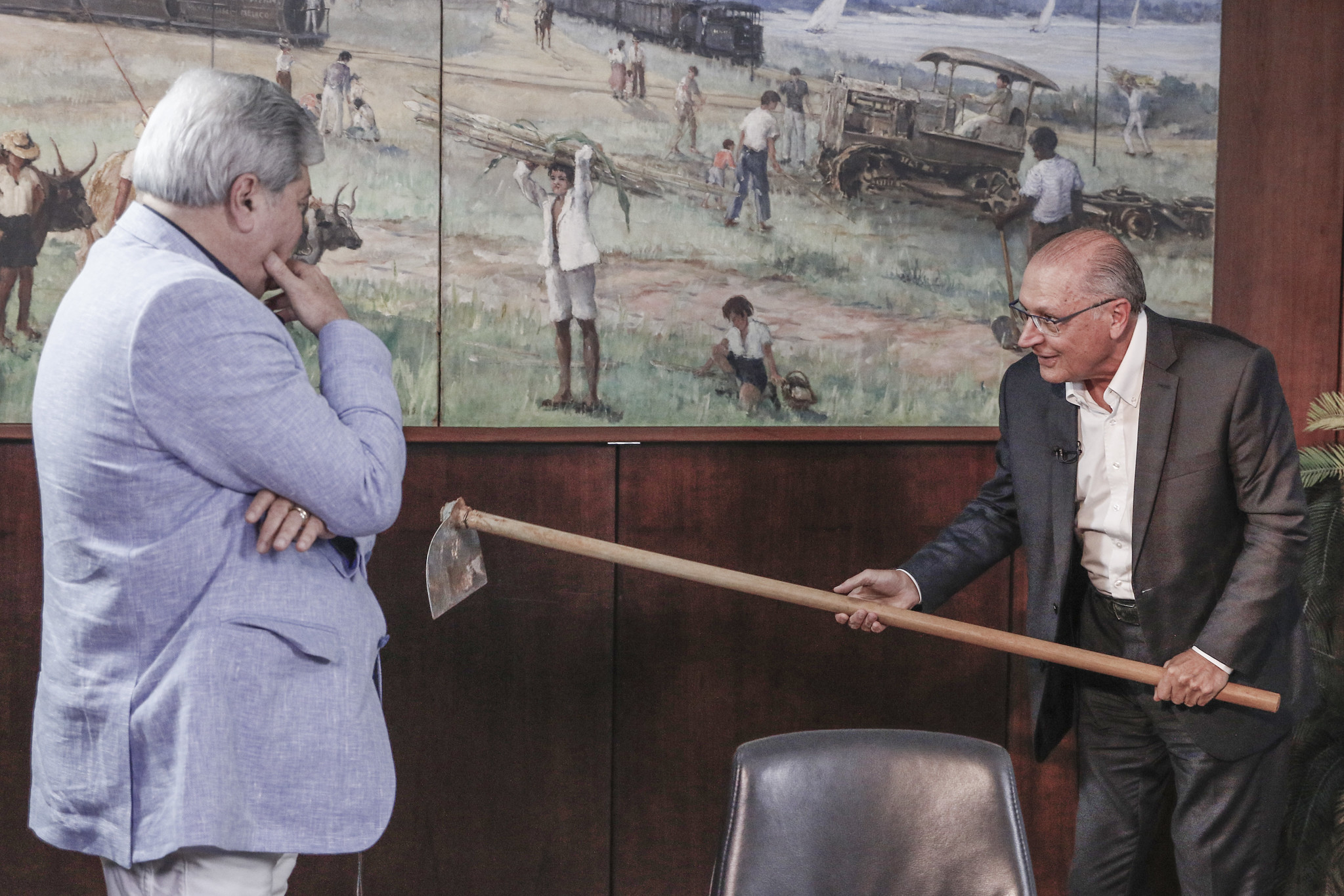 Convidado de estreia do programa Na mesa com Datena, da TV Brasil, o vice-presidente da República, Geraldo Alckmin (PSB), ensinou o apresentador José Luiz Datena a usar uma enxada. O programa foi exibido na noite de terça-feira, 10. “Primeiro, ela tem que estar bem amolada […] Aà você pega aqui, e não é pra ficar...
