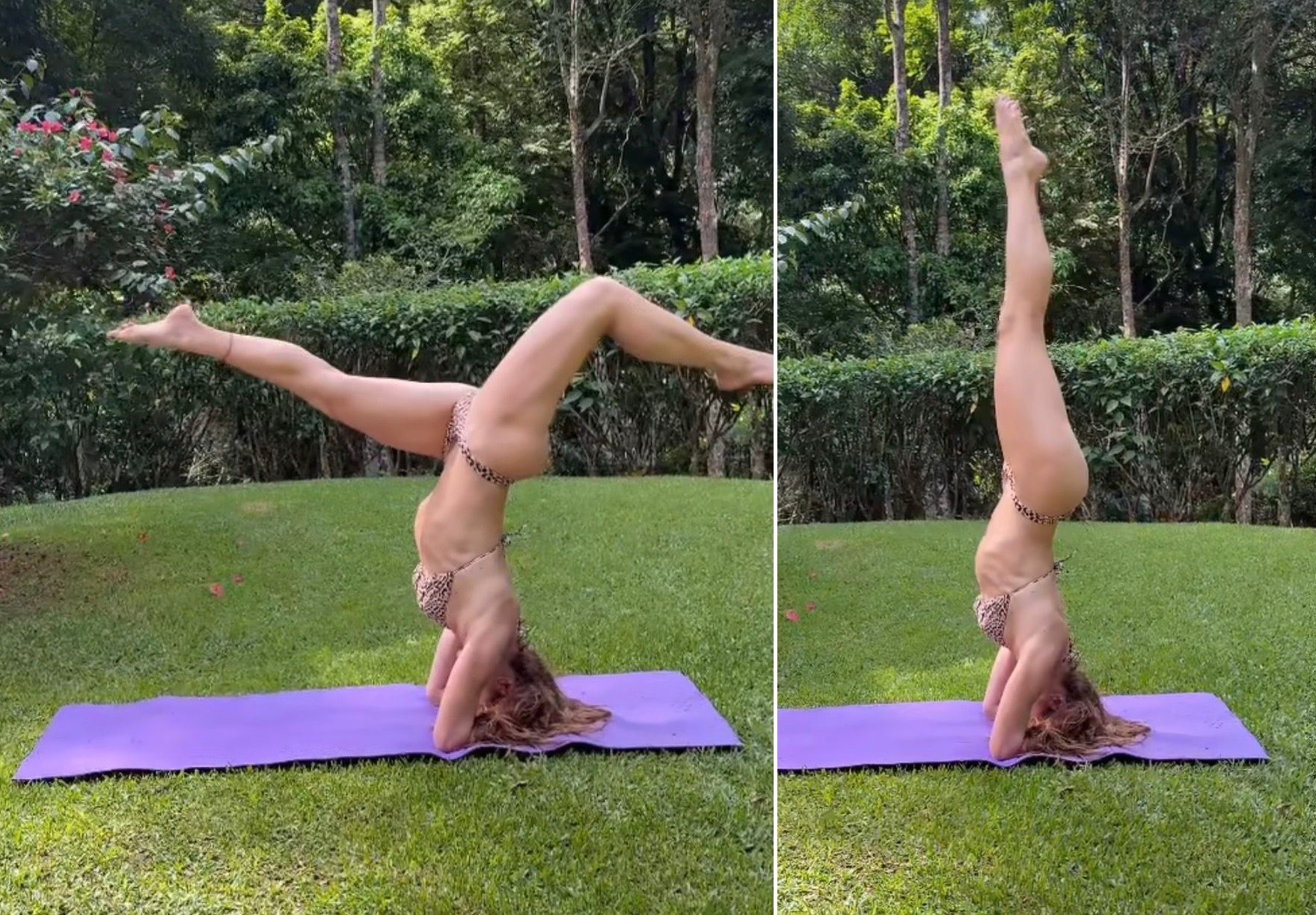 De biquíni, Leticia Spiller surpreende com pose de ioga em meio à natureza; vídeo
