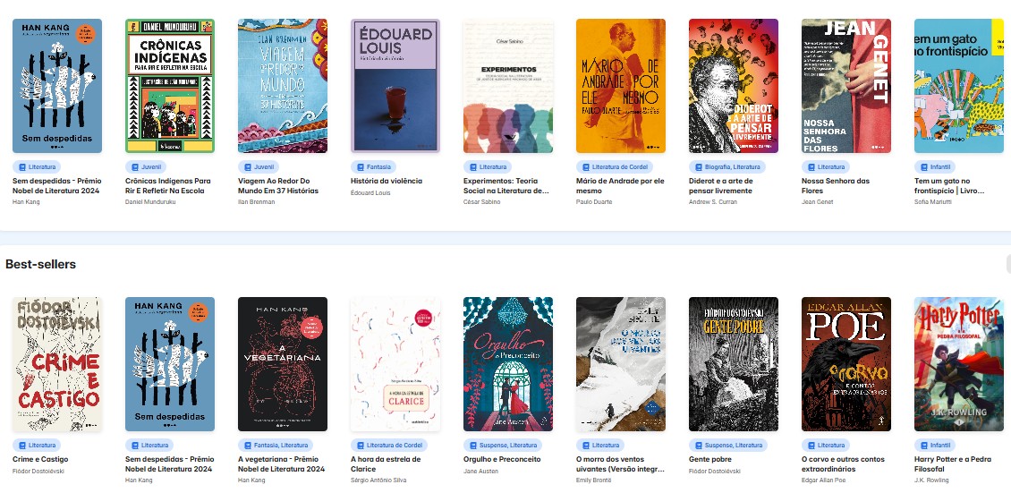 No catálogo estão, entre outras, "Memórias póstumas de Brás Cubas", de Machado de Assis; "Crime e castigo", de Fiódor Dostoiévski; e "Sem despedidas", da sul-coreana Han Kang, vencedora do Nobel de Literatura de 2024.