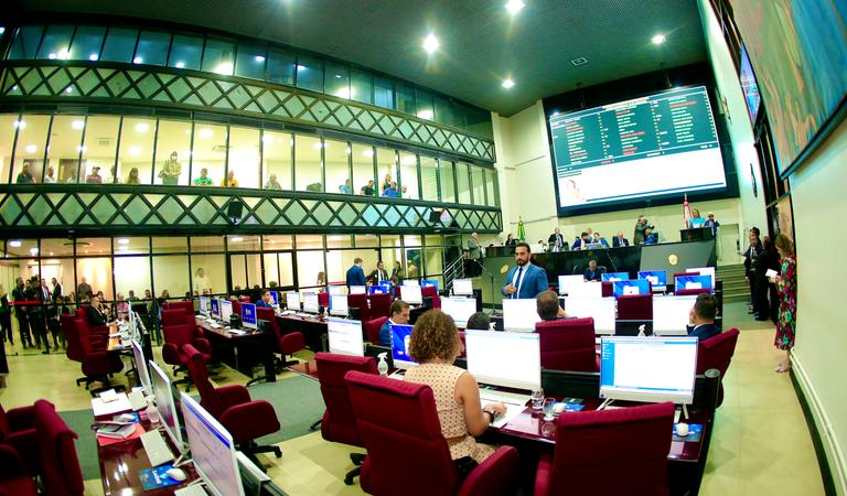 A sessão no plenário da Assembleia Legislativa do Pará (Alepa), no bairro da Cidade Velha, em Belém, nesta terça-feira (7), tem em pauta propostas de lei de naturezas distintas, entre elas, o projeto de lei (PL) de nº 171/2023, do deputado Zeca Pirão, que cria o Certificado Empresa Sustentável às empresas que implantarem práticas que promovam a proteção ao meio ambiente; também, o projeto de lei de nº 122/2024, da deputada Paula Titan, sobre a criação de política pública para a inserção de mulheres na cultura no âmbito do Pará.
