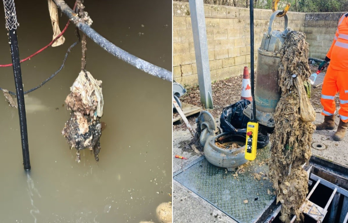 Funcionários da Thames Water, que presta serviços de água e esgoto a 16 milhões de clientes, também encontraram no conjunto grande quantidade de lenços umedecidos.