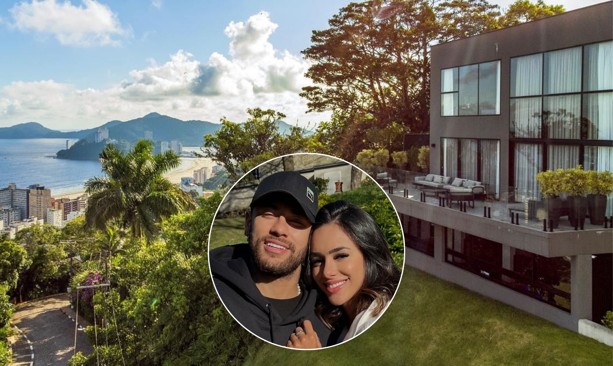 Ninguém pode dizer que Neymar e Bruna Biancardi não estejam vivendo felizes. Nas redes sociais, o jogador, que tem um histórico de muitas polêmicas, costuma aparecer em momentos em família com as filhas Mavie, de 2 anos, e Mel, de 7 meses — frutos do relacionamento com a influencer. E o cenário desta nova fase do atacante do Santos é nada mais nada menos que uma luxuosa mansão, localizada em um morro na cidade litorânea, de frente para o mar.
