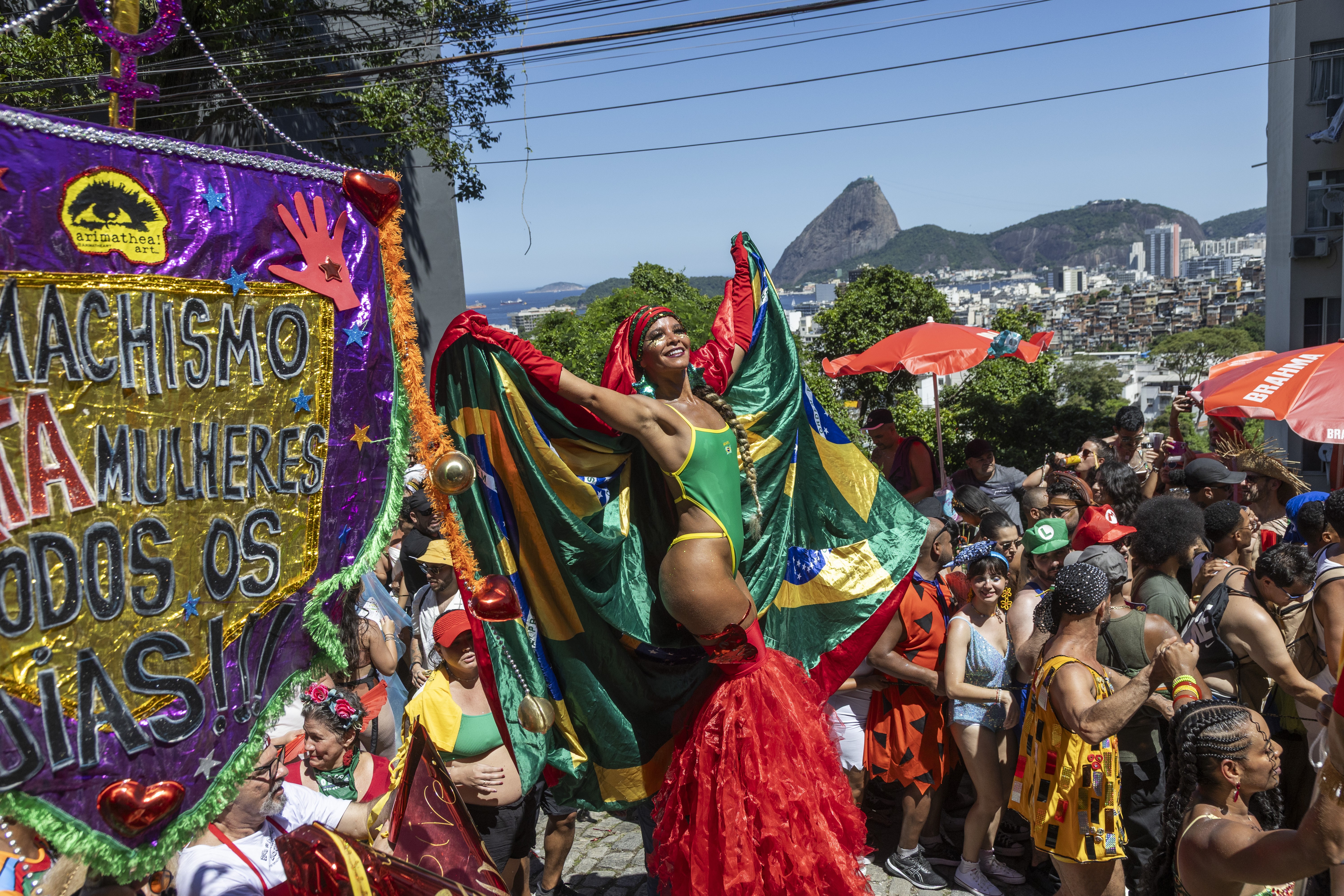E como a criatividade do carioca não para no brilho das perucas, o deboche e o glamour ganham voz em mensagens diretas. Não deixe de conferir a galeria dedicada exclusivamente às plaquinhas e bandeiras deste ano. São recados que vão do humor ácido à conscientização necessária e mostram que, no Carnaval de 2026, o acessório mais indispensável de qualquer fantasia é o posicionamento.
