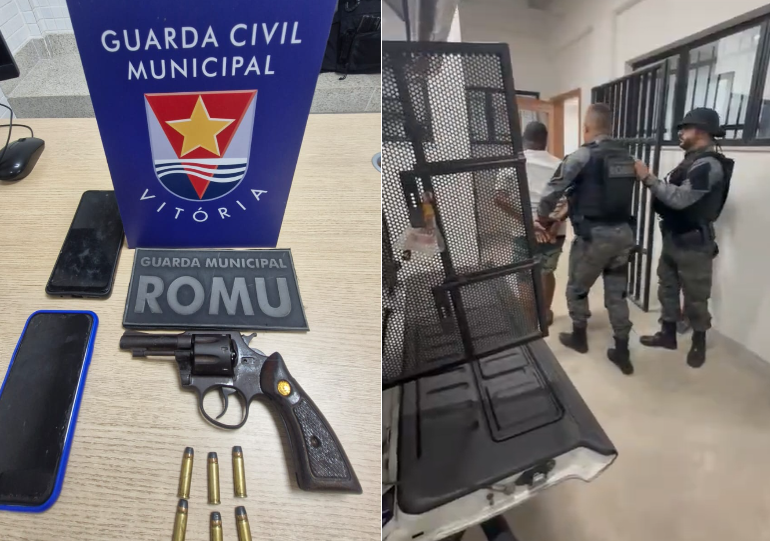 Dupla é presa após ser flagrada com arma e tentar subornar agentes da Guarda em Vitória