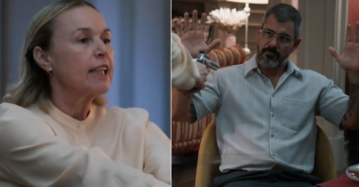 Em 'Três Graças', Helga ameaça Jorginho com uma arma: 'Parceira de crimes de Arminda', diz Kelzy Ecard
