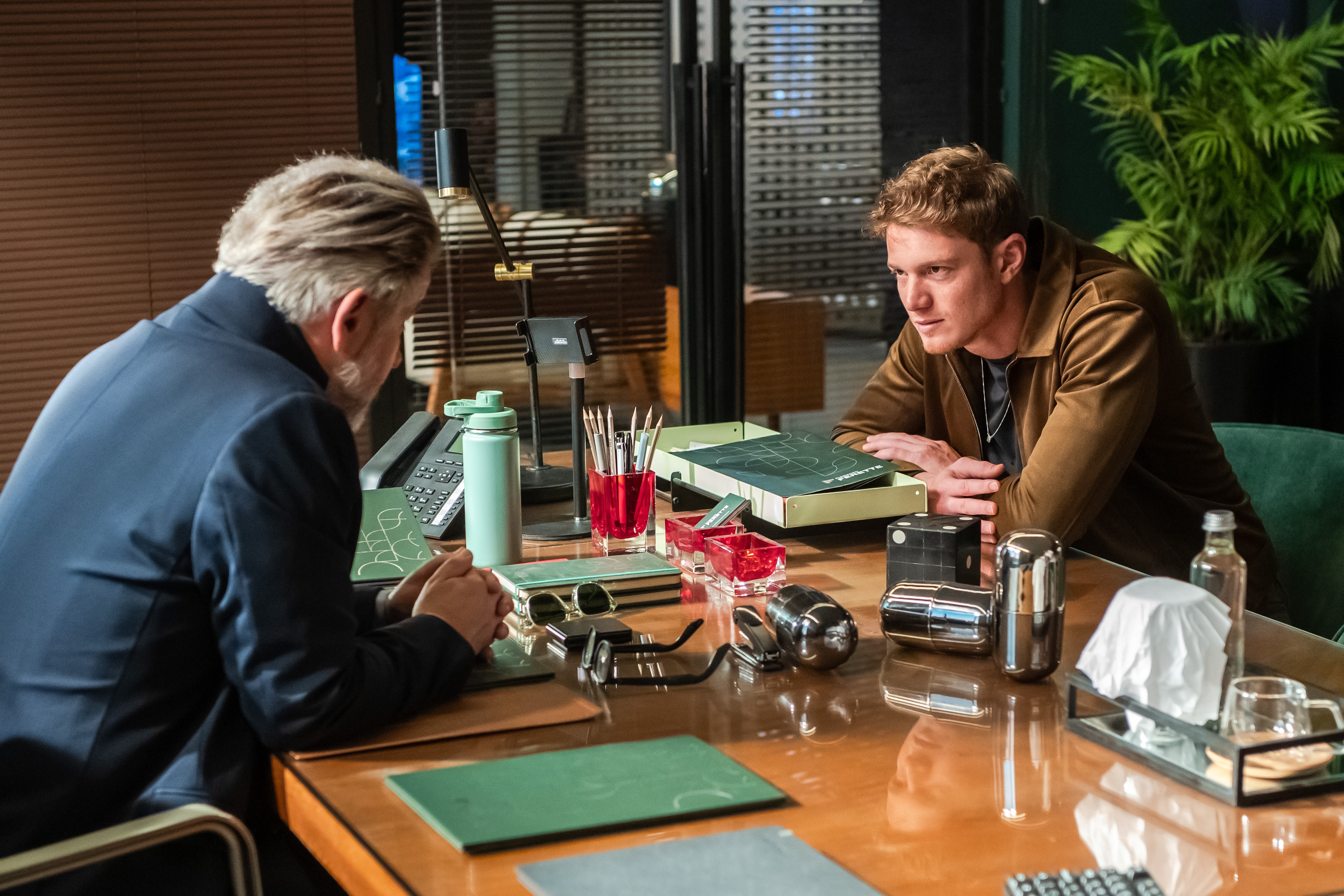 Em guerra contra o pai, em “Três Graças”, Leonardo (Pedro Novaes) invade a sala da presidência da Fundação Ferette e abre o cofre do vilão. Diante de Rogério (Eduardo Moscovis), Zenilda (Andréia Horta) e Xênica (Carla Marins), o jovem encontra documentos comprometedores sobre as atividades criminosas de Ferette (Murilo Benício), além de um envelope com um celular descarregado.