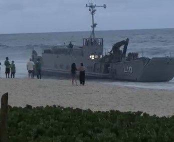 Embarcação da Marinha é vista encalhada