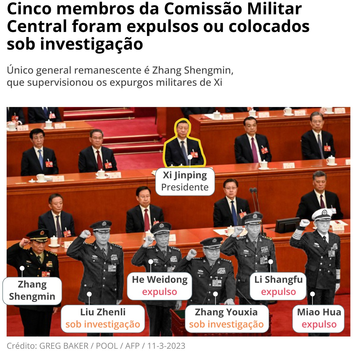 Entre expulsões e sumiços de generais, expurgos de Xi Jinping deixam vácuo no alto comando das Forças Armadas chinesas