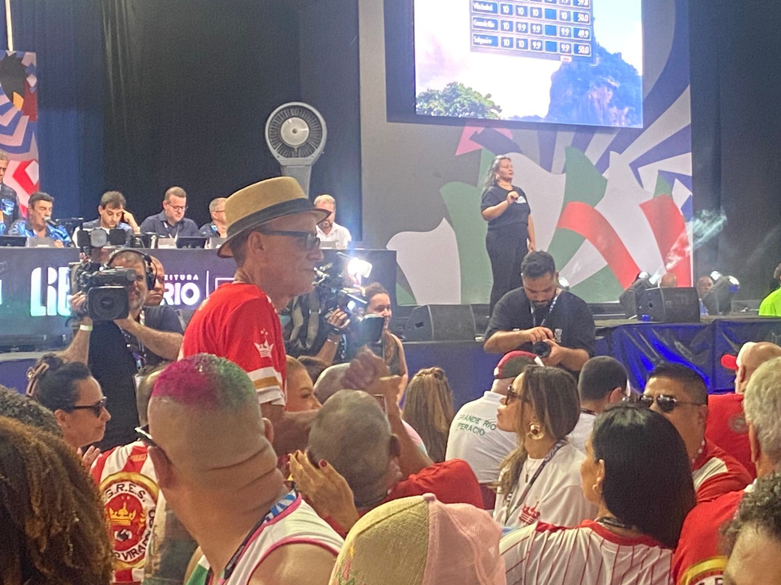 Torcedores da Viradouro gritavam por Mestre Ciça durante o início da apuração das notas das escolas de samba do Grupo Especial. “Olê, olê, olê, olá, Ciça”, dizia o coro. O clima também era de empolgação com Juliana Paes, rainha de bateria da Vermelho e Branco, que se disse em êxtase durante e após o desfile.