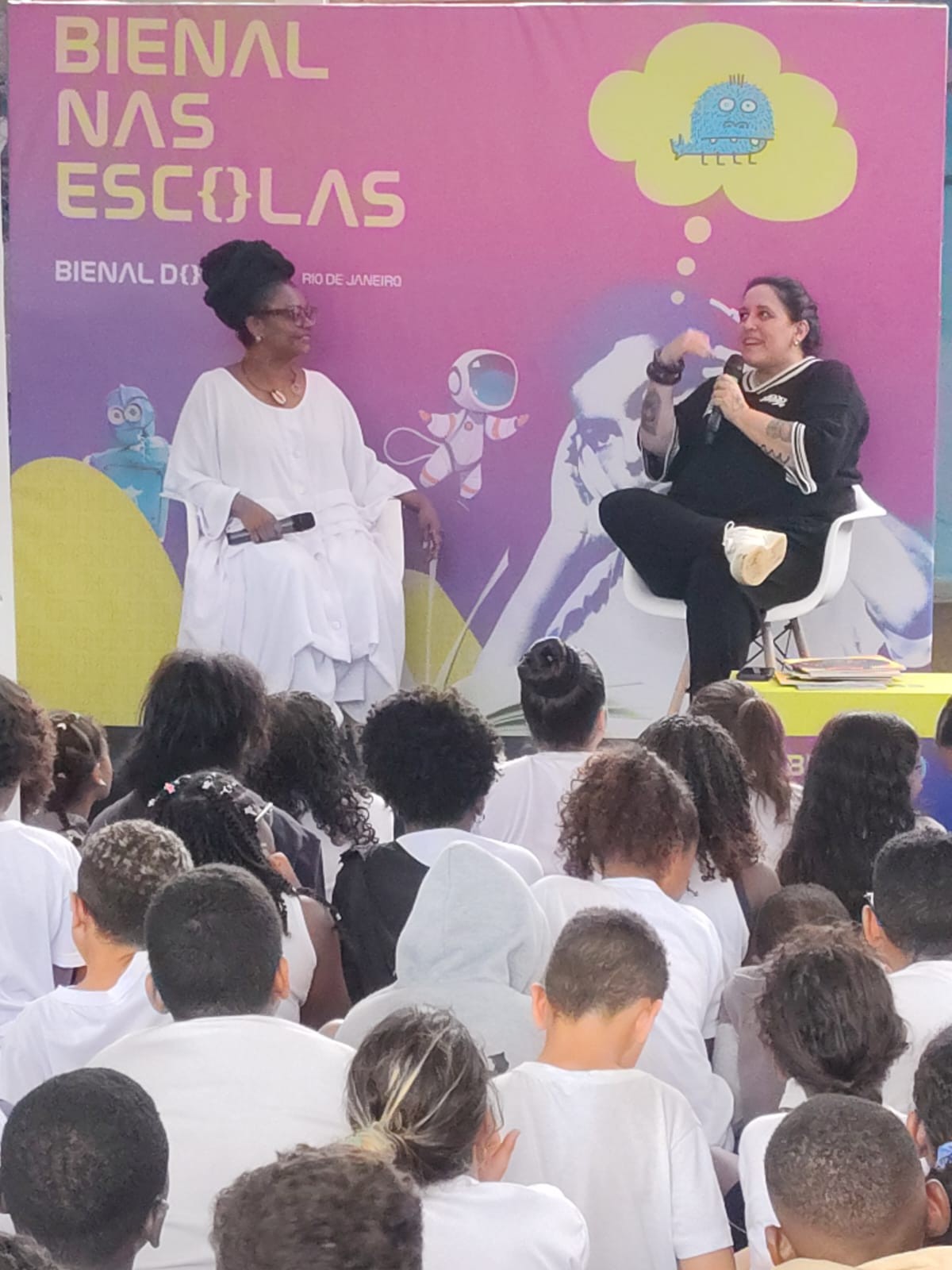 — É de suma importância, porque nós sempre trabalhamos projetos de literatura. Temos piquenique literário, produções de livros, corredor da leitura, estantes em todas as salas. Então, trazer a Bienal para a escola é uma outra forma deles verem o livro, de um jeito lúdico, como foi hoje. Eles ficam ansiosos, pesquisam sobre a autora, pedem novos livros e buscam ainda mais leitura — conta ela.