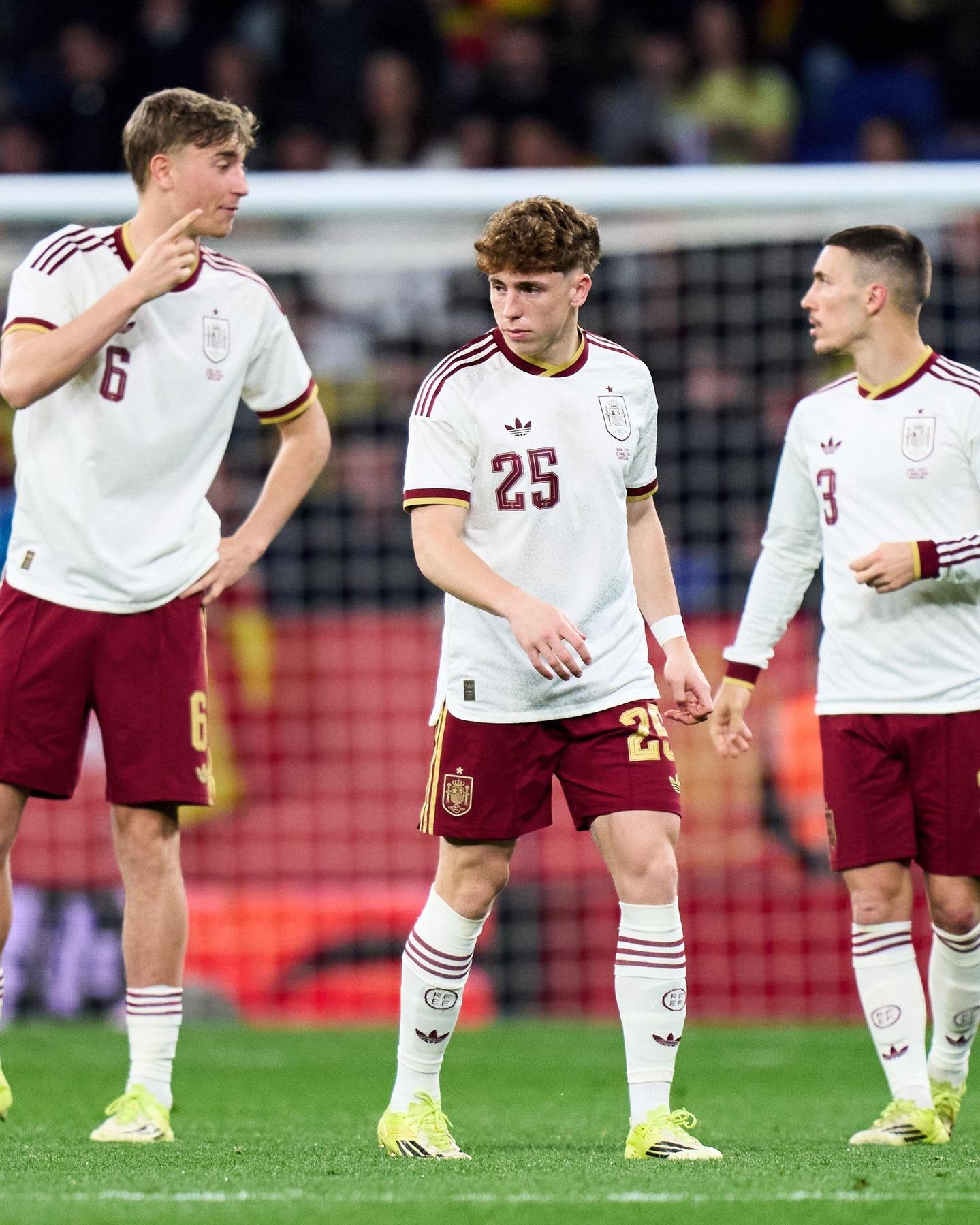 A poderosa Espanha teve amplo domÃnio em campo mas, bastante modificada e mesmo com um jogador a mais nos minutos finais, não conseguiu ir além de um 0 a 0 com o Egito no RCDE Stadium, casa do Espanyol - originalmente o jogo seria no estádio Lusail, no Catar, após a FinalÃssima com a Argentina, mas a guerra no Oriente Médio cancelou a decisão e ainda o transferiu para Barcelona.
