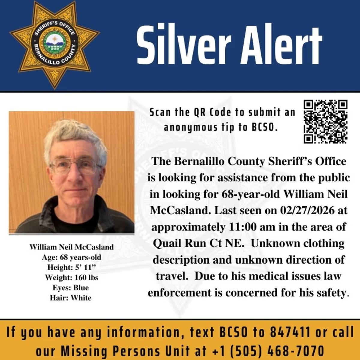 Durante a ligação, Susan conta que William Neil McCasland — que foi comandante de base militar ligada ao incidente de 1947 — deixou a residência do casal sem nenhum de seus pertences usuais: "Ele deixou o celular. Trocou de roupa e vestiu... não sei o quê. Acho que ele foi a pé. Todos os nossos carros e bicicletas estão na garagem”.