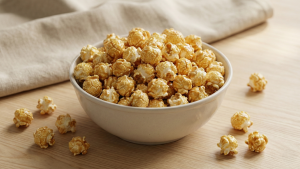 Essa pipoca leva só 4 ingredientes e fica crocante com uma camada fina de caramelo